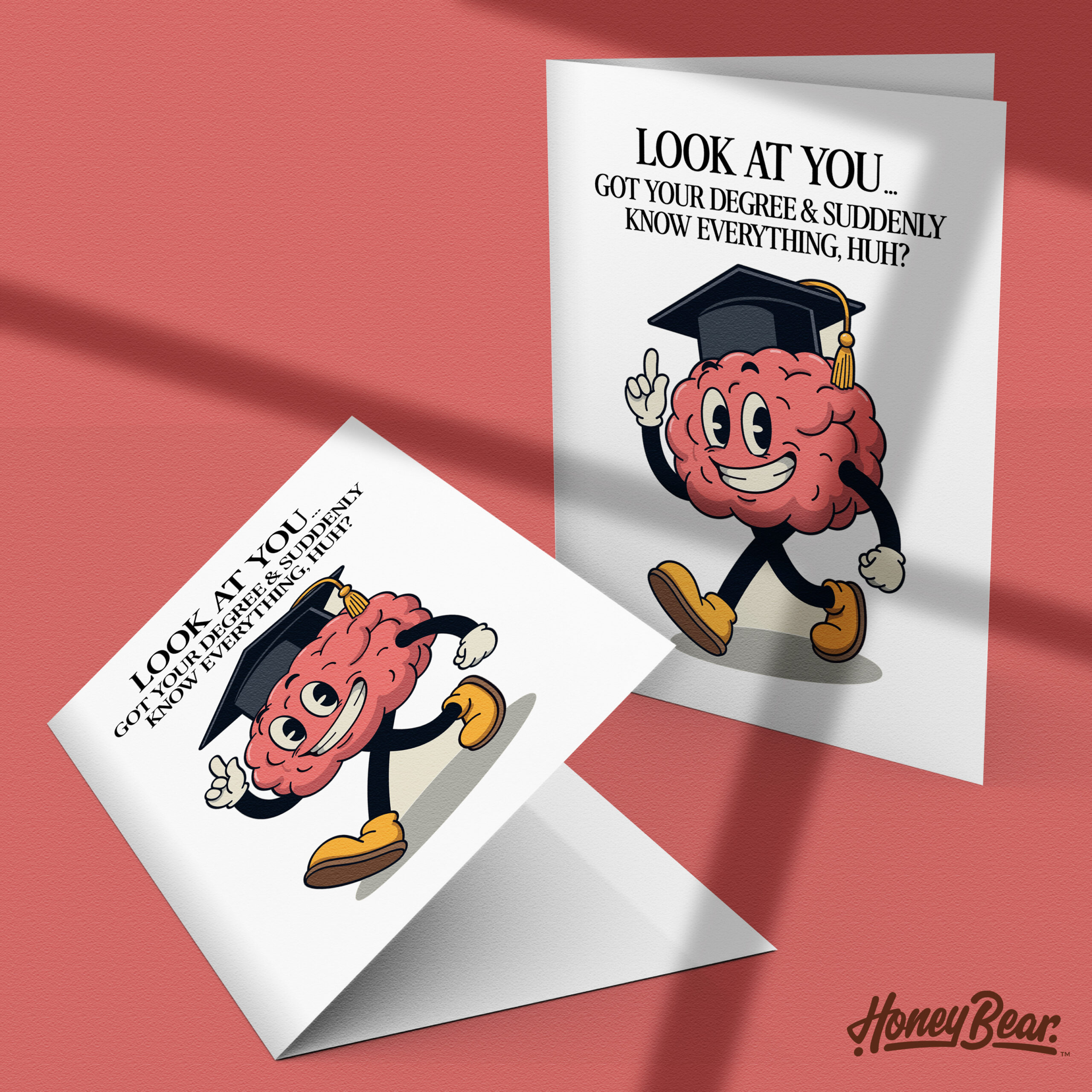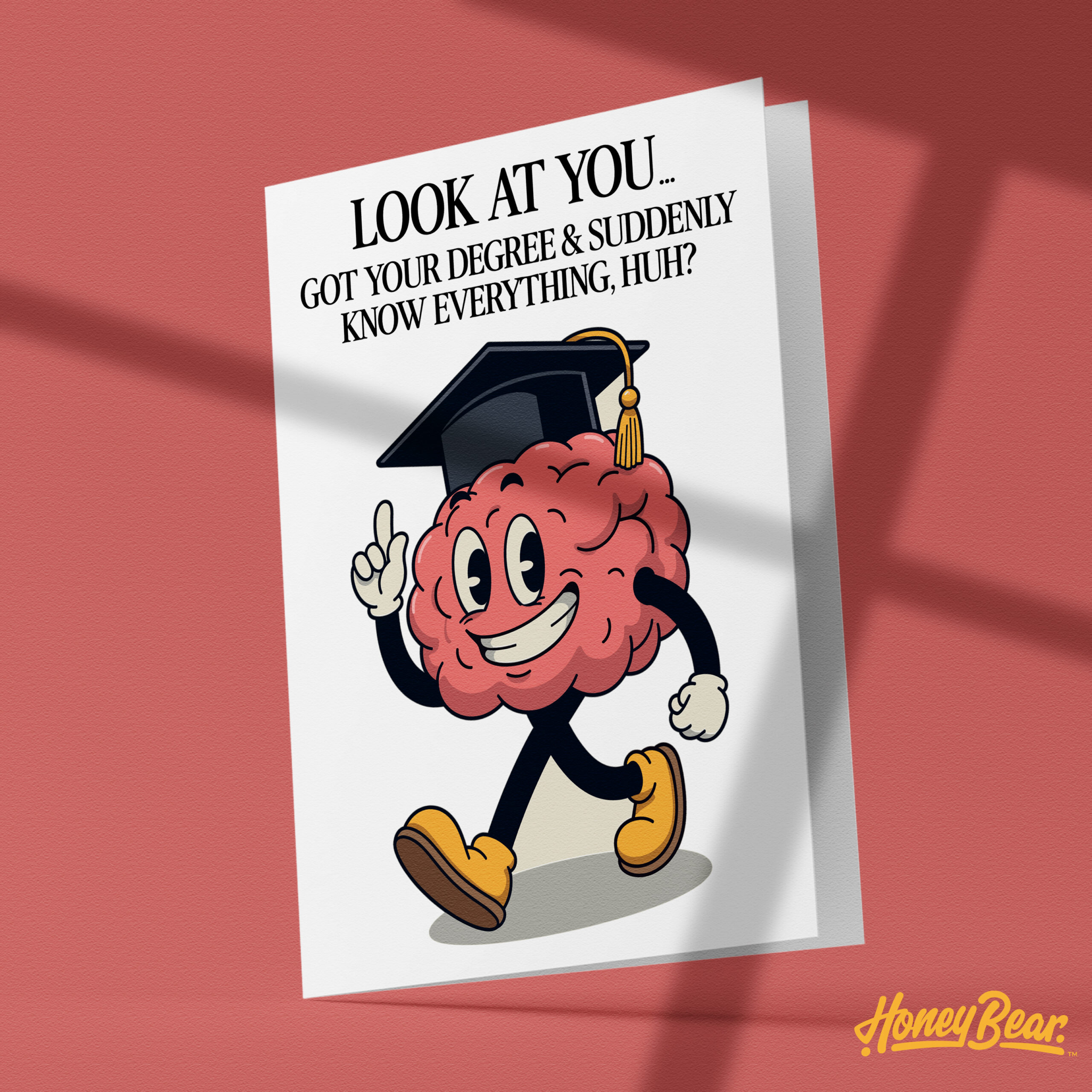 Celebrate your graduate with our Meme Graduation Greeting Card! Featuring a fun hand-drawn character wearing a graduation cap and the witty message, “Look At You… Got Your Degree & Suddenly You Know Everything Huh?” this card brings humor to the graduation celebration.