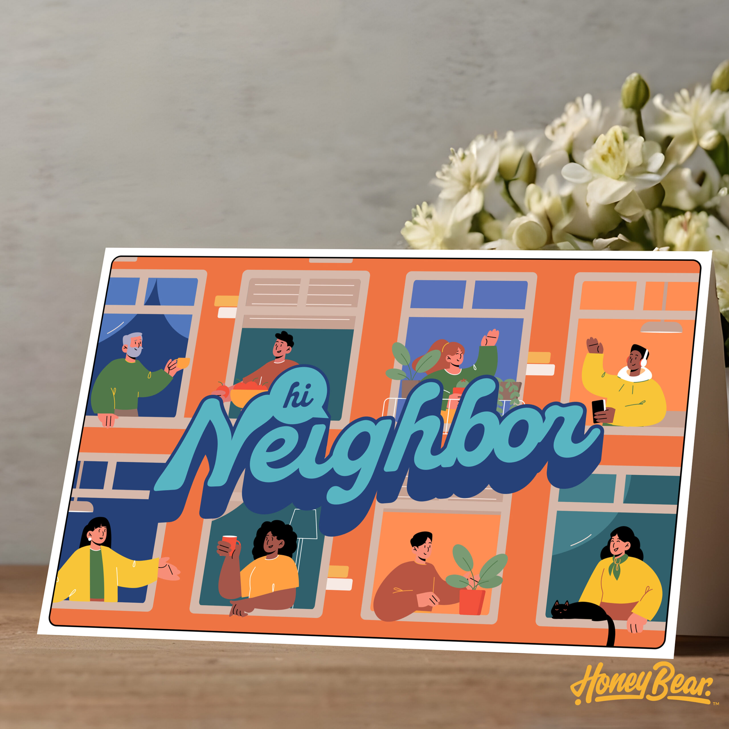 Make a warm first impression with the ‘Hi Neighbor’ Neighborhood Greeting Card from Honey Bear Co.! This hand-drawn, stylized card features a friendly “Hi Neighbor” design, perfect for welcoming new neighbors or reconnecting with old ones.