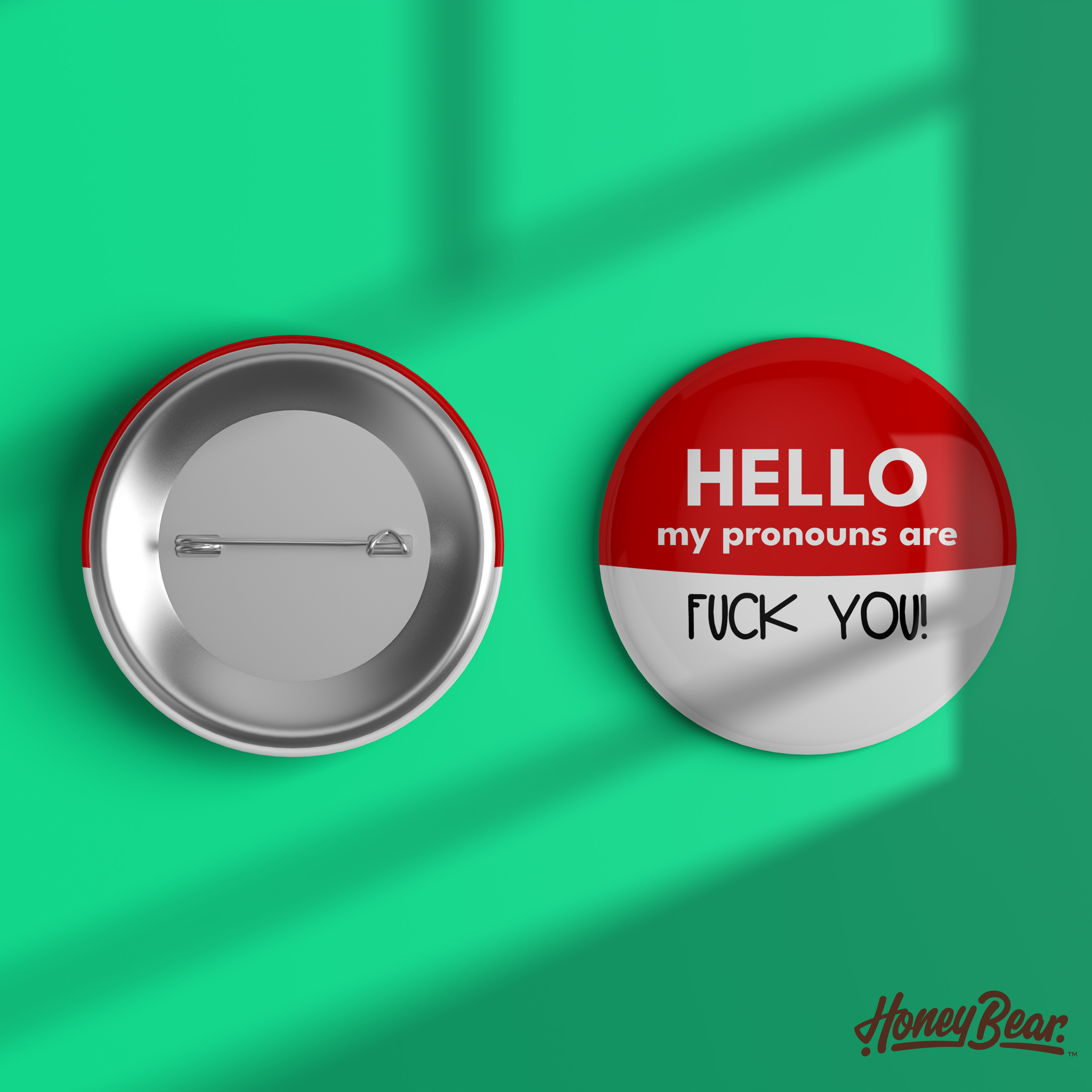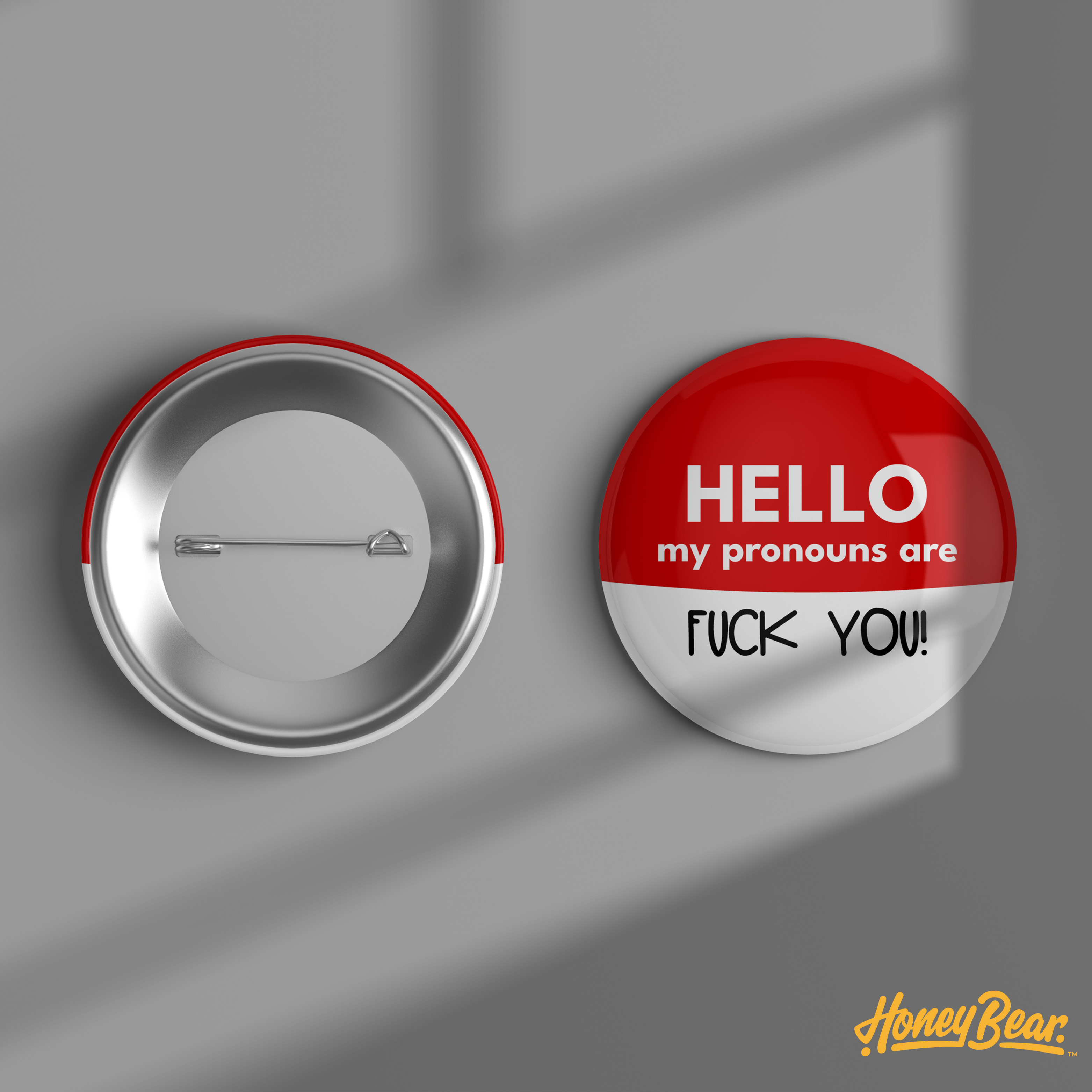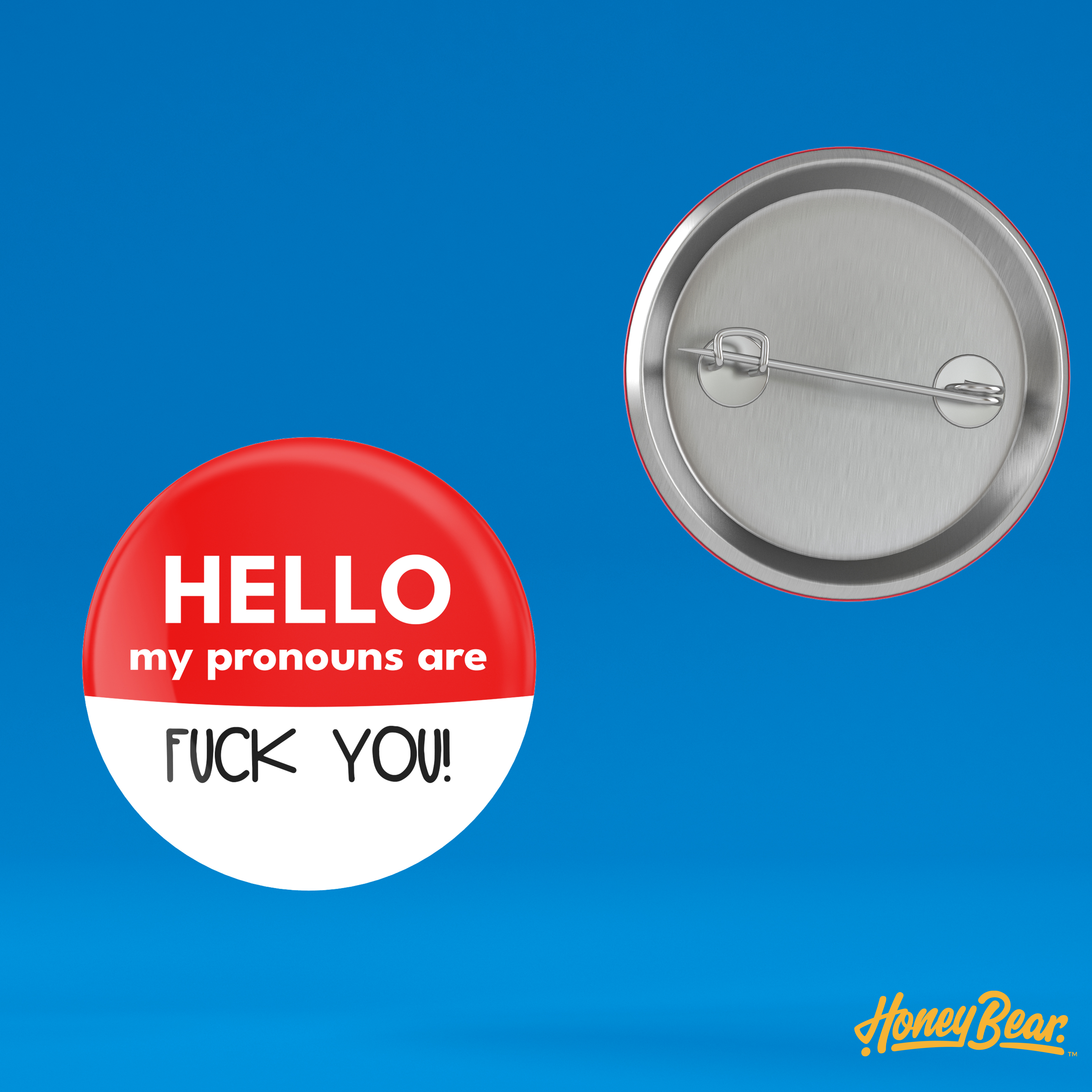 Rock Your Pronouns with Our ‘Fuck You’ Pin Back Button. Let the world know who you are—loud and proud—with our fun and bold Fuck You pronoun pin! This 1.5″ pin back button is the perfect way to show off your pronouns, add some personality to your look, and spread a little pride wherever you go.