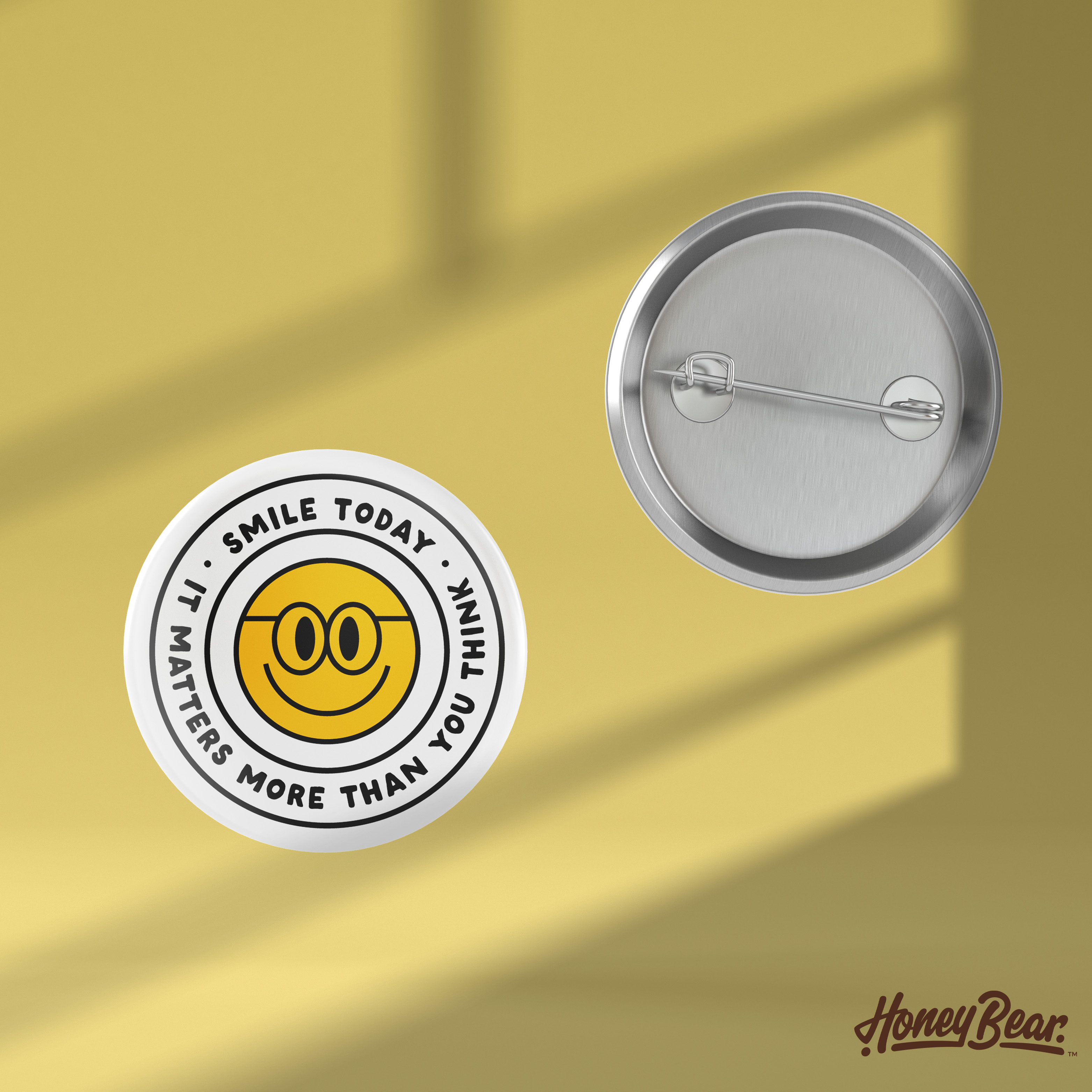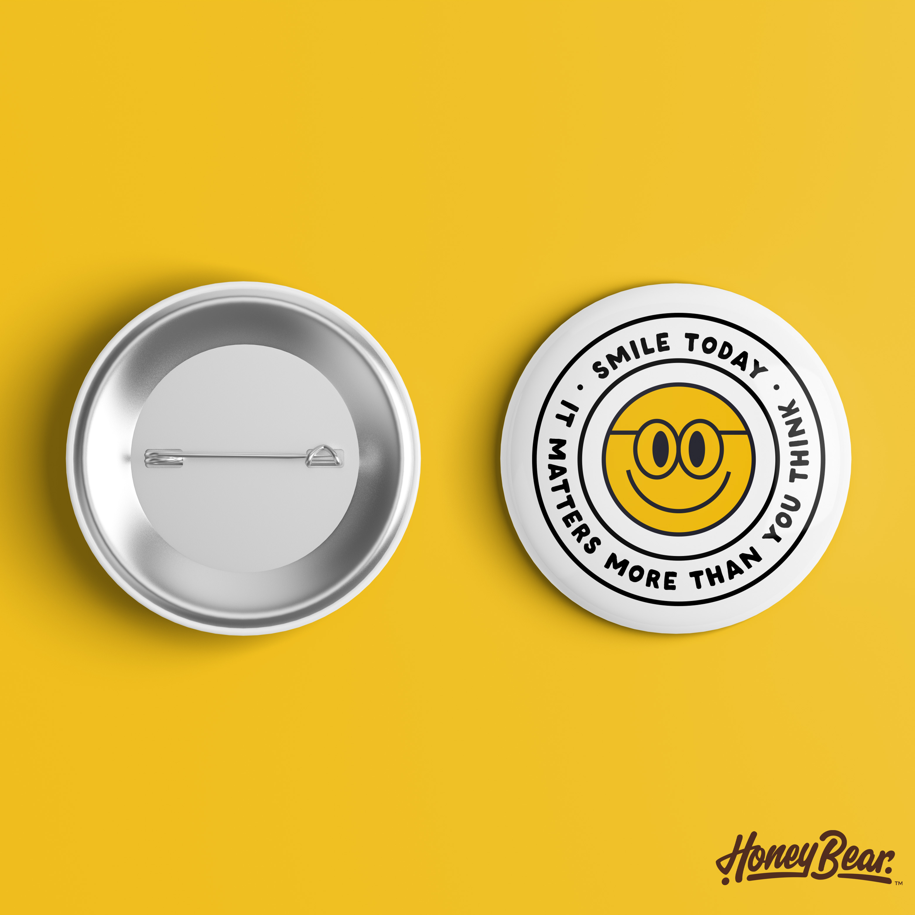 Say it without saying a word with our “Smile Today, It Matters More Thank You Think” pin back button! This 1.5-inch button adds the perfect mix of humor, sass, and personality to your everyday look.